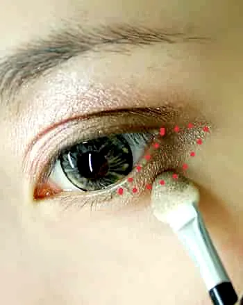 Step5:然后用浅棕色眼影在眼尾处加重,只需要将眼尾的三角区域涂满即可。