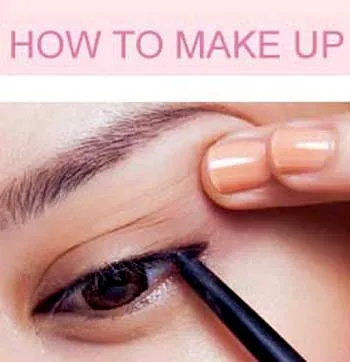 步骤六:找到防水型的眼线笔,在指腹掰开眼皮的时候沿着睫毛根部勾画眼线。