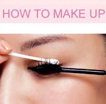 步骤七:用睫毛夹将睫毛分成两段夹卷,然后用棉签放在眼皮上,然后用睫毛膏顺着睫毛涂刷,这样可以避免晕妆。