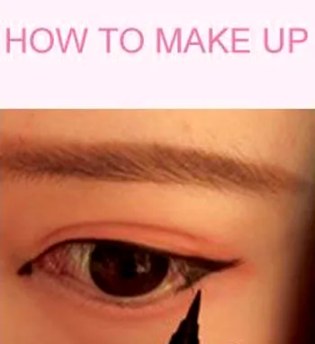Step4:选择防水型的眼线产品,这里使用的是眼线液笔,沿着眼头往眼尾勾勒,在眼尾的三角区域填补完整,如图。