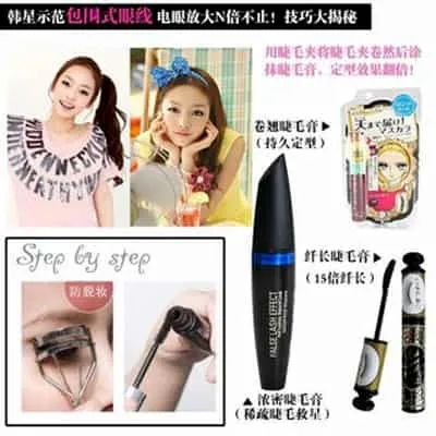 Step8:有了睫毛膏还是不够完美哦,必须借助好看的假睫毛,粘贴的时候注意上睫毛要服帖眼线,下睫毛要尽量均匀分布在眼尾。