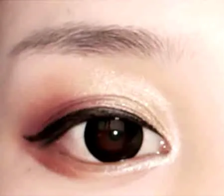 步骤七:眼影上完后就是画上眼线。可是具有使眼睛变大的功效,眼睛的妆容会更加精致。