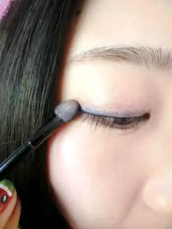 步骤五:然后用蘸了黑色眼影的眼影刷沿着睫毛根部晕染,晕染的线条尽可能的细才比较自然。
