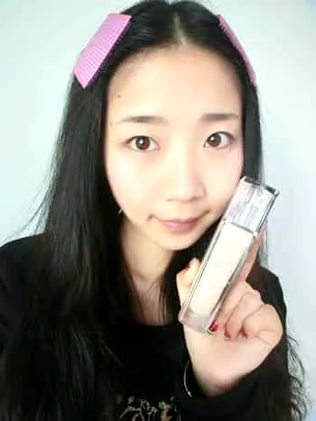 步骤一:将刘海两侧的头发用夹子分别夹起来,选择水润度高且遮瑕力一般的的粉底液点拍在全脸,如果有瑕疵可以直接用粉底液代替遮瑕膏局部点拍。