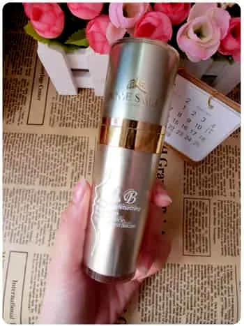 步骤一:选择水润度好且遮瑕力一般的BB霜来对付日常妆就可以了,然后用粉刷轻轻推开。