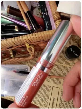 步骤七:最后,利用有一点点珠光的唇彩沿着唇部涂抹起来,在唇瓣中间处稍微重刷一下。