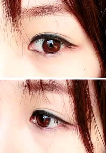 步骤二:找到眼线膏,用眼线刷蘸取适量后沿着睫毛根部涂描眼线,在眼尾处轻轻拉长营造自然的眼线。