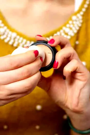 步骤二:一般来说,普通人的肌肤会有黑眼圈和痘印都瑕疵,所以遮瑕膏就可以局部按压来达到肤色无瑕。