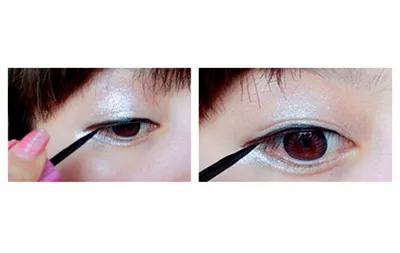 步骤三:利用眼线液笔来描眼线,化的时候先从眼珠上方再向眼头及眼尾延伸,这样画出来的眼线比较自然。