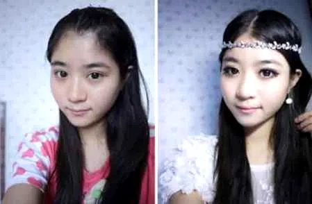 妆前妆后对比图:左边是没有化妆的素颜照就像一个不起眼的路人,右边则是化了妆,落差真的是很大,一边是大妈,一边是女神,下面跟着小编一起来学习吧!