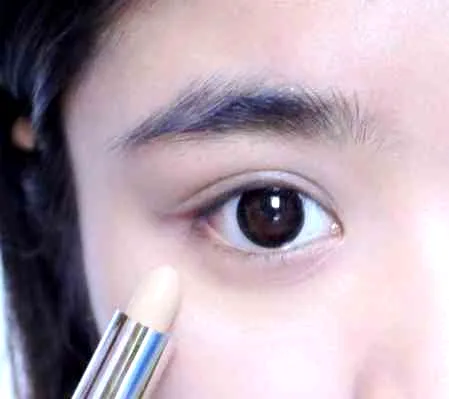 步骤三:接着把遮瑕膏涂抹在眼睑的下方,注意不要涂抹的太厚。