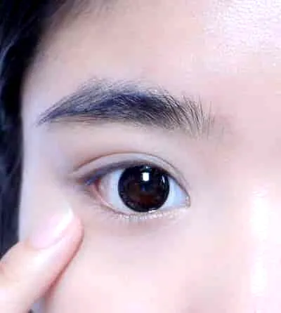 步骤四:然后再用指腹按压,就会很好的遮瑕掉眼睑的暗沉。