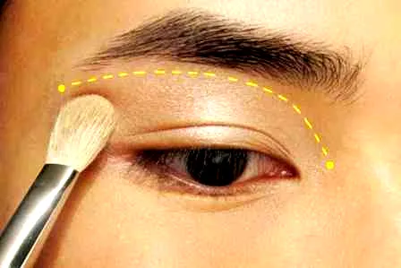 第二步:先上第一层眼影,眼影的颜色要是珠光的浅银色或者是米色,大面积的将其晕染开来,做为一个打底。这样也不会担心眼睛看起来浮肿,这层眼影也主要是用来提升眼部光泽的作用。