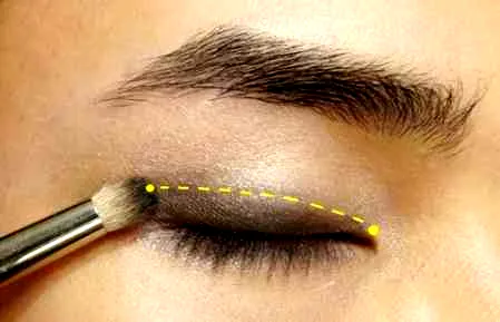 第四步:最后选择一支比较小号的刷子,沾取一点深灰色或者是黑色的眼影,在靠近睫毛根部处涂抹,小面积就可以了,这个作用是用来加深眼神感的。