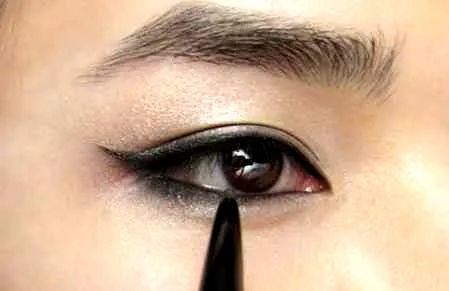 第七步:韩系的眼线分很多种类,有上扬的,也有平拉的,但是都有一个共同点就是眼线一定要细,而且越靠近睫毛的根部越好,内眼线也可以。其实这样的一个妆容反而会比画上一条粗粗的眼线更能够将双眼放大,妆容看起来也不会浓。