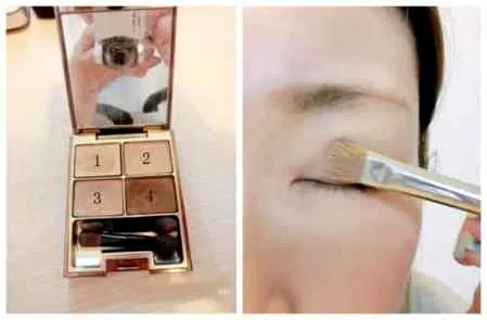 Step5:下眼睑也一定要刷上眼影哦,在眼睑后方画4号色,在眼头的部分用1号色。