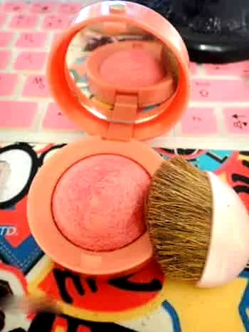步骤七:用宽面的腮红刷,蘸取少量的珊瑚粉腮红在颧骨处打圈晕染,控制好量才不容易造成颜色过重。