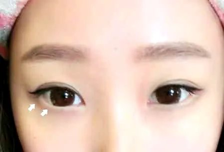 步骤四 :画眼线的时候要画睫毛的根部,这种内眼线能使眼睛看起来更有神,更自然。画的时候,在靠近眼尾的那段,可以画出来多点,眼尾向上走一点。