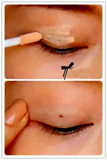 Step3:找到专业的眼部遮瑕膏,在眼窝和眼袋的地方涂抹,指腹轻轻拍散。