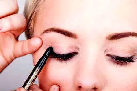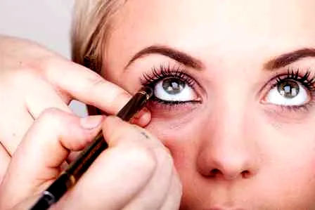 步骤二:使用防水眼线笔,紧贴睫毛根部画上下眼线,填满睫毛之间的缝隙,内外眼角都要画到,增大双眼轮廓。