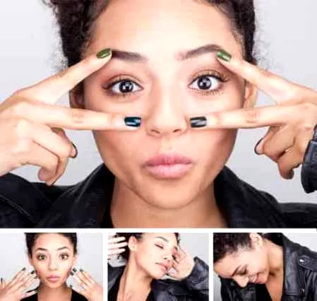 步骤一:为了更好地凸显眼部的亮片,底妆要轻透自然。勾勒出清爽整齐不杂乱的眉型。