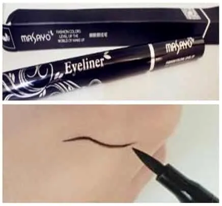 眼线笔用的是MASAYO的媚夜眼线笔,刷头柔软比较好掌握。画在手上做个小实验,干的很快,防水不易花妆。
