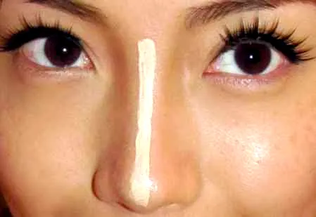 步骤三:利用高光色,提亮鼻梁中心,让鼻梁显得更挺拔,鼻型更加精致。