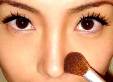 将边缘晕开,令颜色融入肌肤,让鼻子更挺更俏的妆容就完成了哦。
