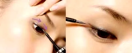 步骤3:画眼线时,可以用手往上拉住眼皮,按照“从眼尾到中部,从中部到内眼角”的顺序分两步画上眼线,避免眼线画得不好。最后,想要更加凸显专业形象味道的MM可以试试稍微将眼线往上挑,但不要超过5mm,这样可以使眼睛更显分明。