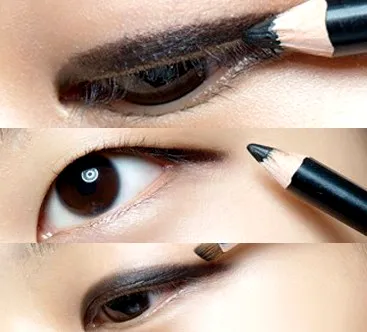 步骤3:最好用晕染刷将眼线稍稍晕开,打造自然的眼线。睁开眼睛,是不是瞬间变得大而有神了?