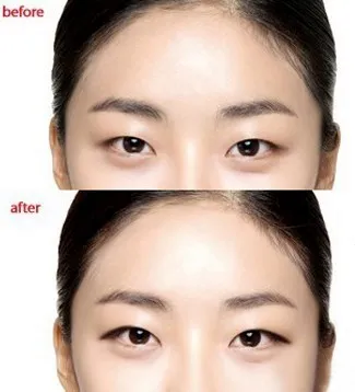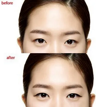 妆前模特的双眼看上去无神、比较小,这是单眼皮女生最纠结的事情。可以通过画眼线的方法修饰眼型,从而达到让双眼有神的效果。妆后的模特眼线变长了,内眼线让她看上去眼睛睁大了,炯炯有神。