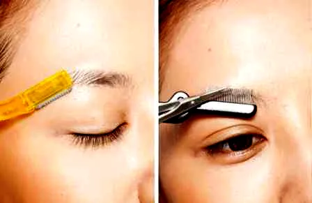 步骤2:修剪过长的眉毛,手持小剪刀,以眉梳辅助贴近眉毛,将超出眉梳外的毛发修剪至适当长度,维持清楚眉型即可。