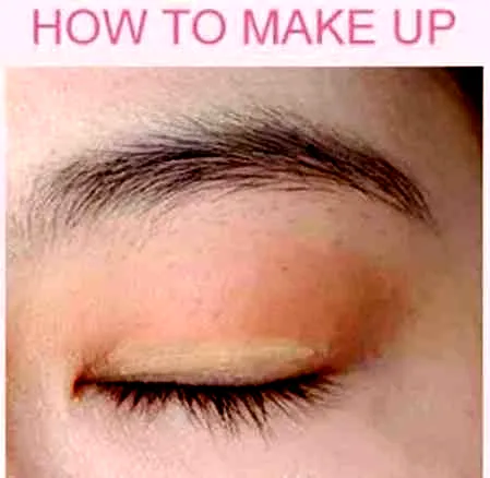 步骤一:如图所示。首先往上眼皮贴**眼皮贴,之后用浅咖色眼影浅浅扫一层在眼窝处,再接着用深咖色眼影在睫毛根处以及眼尾处加深颜色,注意晕染自然。