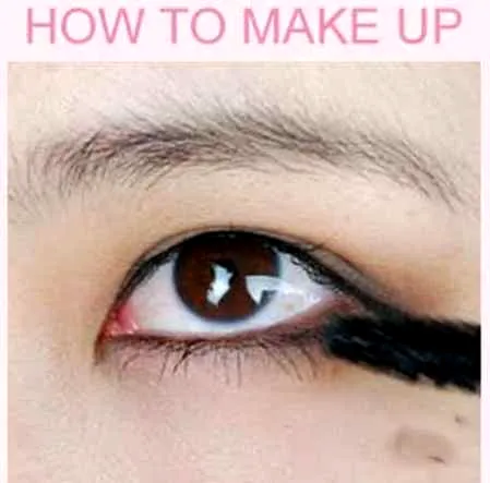 步骤四:先用睫毛夹夹翘睫毛,然后从睫毛根处以“Z”型来回往上刷睫毛膏,接着眼睛往上看,一根根轻刷下睫毛。