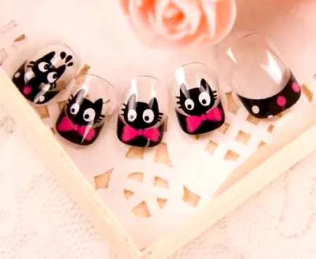 卡通美甲好看的图片 海绵宝宝黑色卡通猫