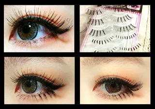 step5:眼线画好之后,就是贴上假睫毛,这样可以让眼睛变大,因此,睫毛的户弧度也需要变长,在贴到真睫毛上面的位置,**这次用到的假睫毛是整套出售的 ,上下睫毛是也需要搭配。