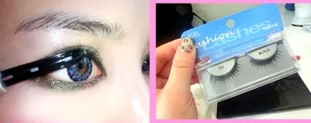 step4:然后用睫毛夹将睫毛翘起来。然后在贴假睫毛。粘上睫毛在涂上睫毛膏。