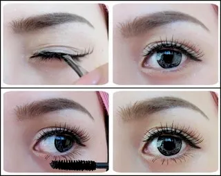 Step4:眉型处理好之后,对睫毛的处理,可以选择用一个防水的睫毛眼线,因为这样可以加大眼睛的圆润,因为这样在画眼线和使用睫毛夹的时候会非常顺手。