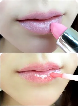Step9:最后就是对嘴唇部分的处理,清透裸妆,一定不能少了对嘴唇。而这部分可以选择淡粉系列的口红和亮晶晶的唇彩,这样会显得非常甜美**感觉,还增加了一种清甜的风格。
