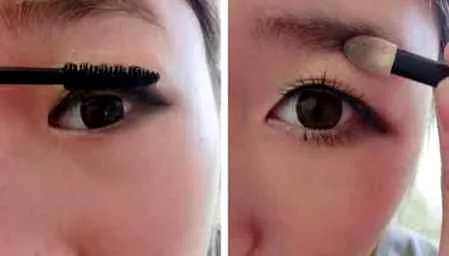 step5:然后再涂睫毛膏,睫毛膏不长也没什么关系,因为要上假睫毛,如果觉得眼睛还是很小,可以用两对假睫毛,全用自然型的会比较好看哦!