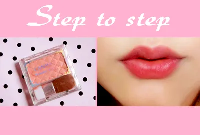 Step3:利用橘粉色的腮红将脸颊两侧的部分晕染开,再将颧骨最高处着重晕染。在润唇的前提下,涂上橘红色口红,记住涂的顺序从中间向四周蔓延,这样唇色会比较自然。