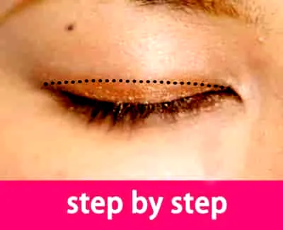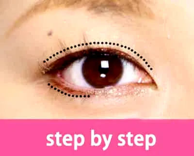 Step2:然后借助眼影刷来上棕色眼影,涂抹的时候从睫毛根部往上晕,这样能形成渐变的颜色,看起来比较自然。