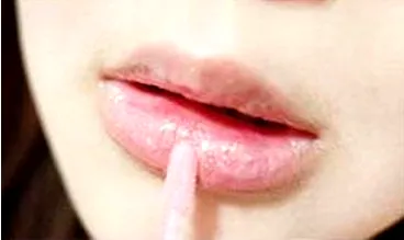 步骤五:最后,使用带有珠光粉的唇蜜在双唇涂抹一遍,使唇部看起来更加饱满水润,整个韩式清新桃花妆就完成了。