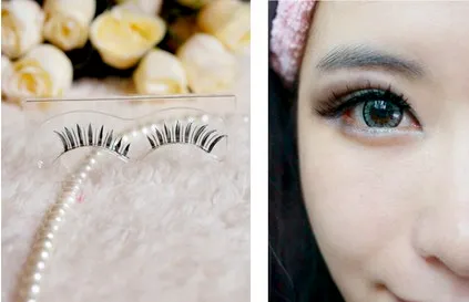 步骤五:选择一款浓密型的假睫毛,涂好胶水之后粘在睫毛根部,下眼睑也要粘哦,再用睫毛膏轻轻的涂刷一遍,这样就能拥有欧美立体眼妆的效果。