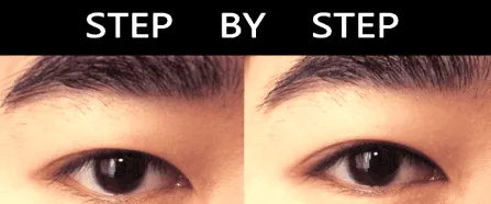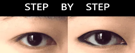 Step5:接着画上下眼线,在眼头跟眼尾的地方,中间要空开。再上内眼线的基础下,在上面再话一条上外眼线,然后在眼头的地方连接上下眼线,把眼线连接起来。