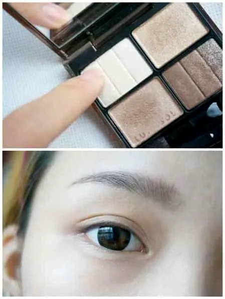 2、裸妆眼影部分不能夸张,用带有珠光的白色眼影,打在眼窝上。
