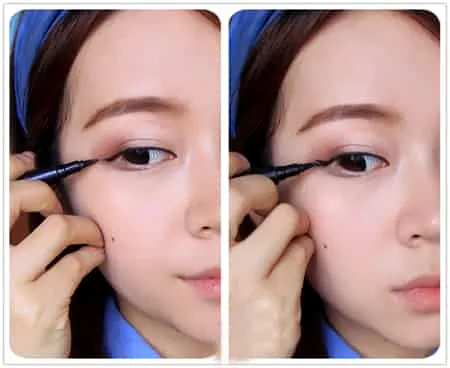 STEP 3:新手画眼线是比较难的,初学者可以先试着将睫毛空隙填满,眼尾拉出大概0.5CM。
