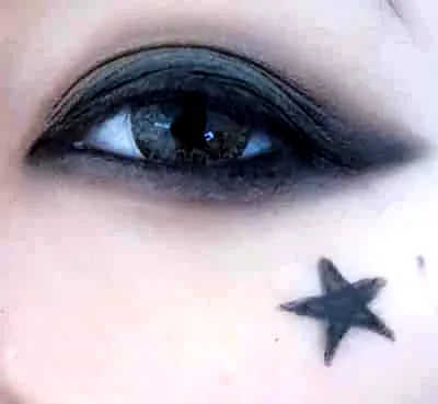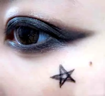 STEP 4:五角星先用眼线笔画出个大概的模型,再将其涂满。简单四步,教你打造韩国妆容。