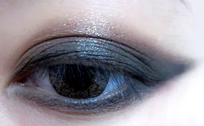 STEP 2:用黑色的眼影在双眼皮的范围上晕染,用指腹或者眼影刷涂满。