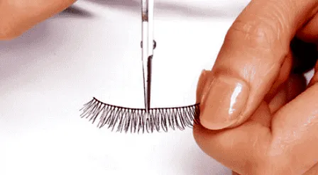Step2:选择中间长两侧短的自然交叉型假睫毛,从中间剪为两半当两副睫毛使用。